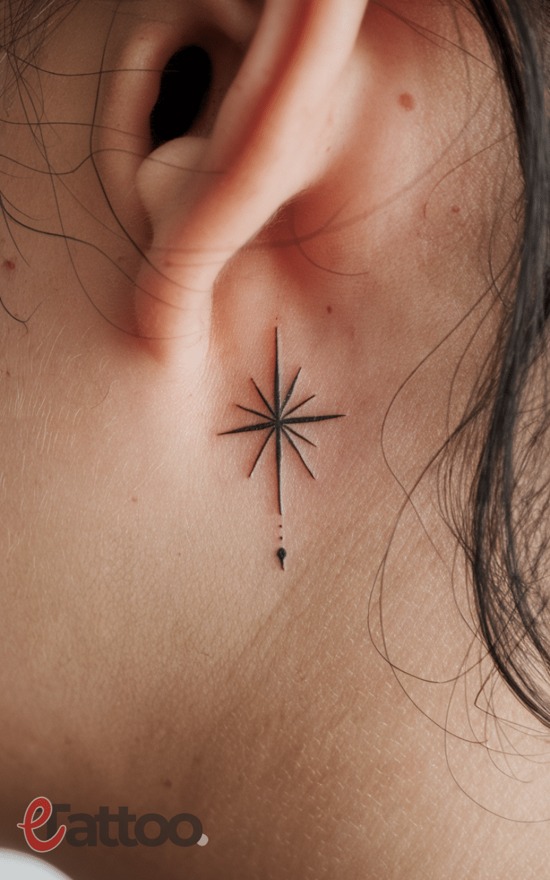A tiny star tattoo behind the ear is one of the most delicate and dreamy tattoo ideas because it symbolizes hope and light in dark times and it shows that you always look for brightness no matter what happens. It is a perfect tattoo for someone who loves subtle designs because it is hidden but meaningful at the same time. The star can be drawn in black ink for a minimalist look or in white ink for something more secret and magical. Every time you touch that spot you will remember that even small stars shine brightly in the dark sky.
