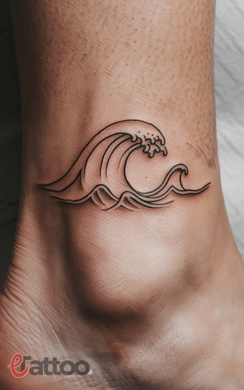 A small wave tattoo on the foot represents calmness and the power of nature because it shows how life has ups and downs just like the sea and how you can learn to move with the flow instead of fighting it. It is simple yet full of meaning because it reminds you to stay peaceful and strong no matter what comes your way. The wave can be drawn in one simple line which makes it very stylish and clean and it looks great on the side or top of the foot. This tattoo is perfect for someone who loves the ocean or simply wants a symbol of balance and serenity.