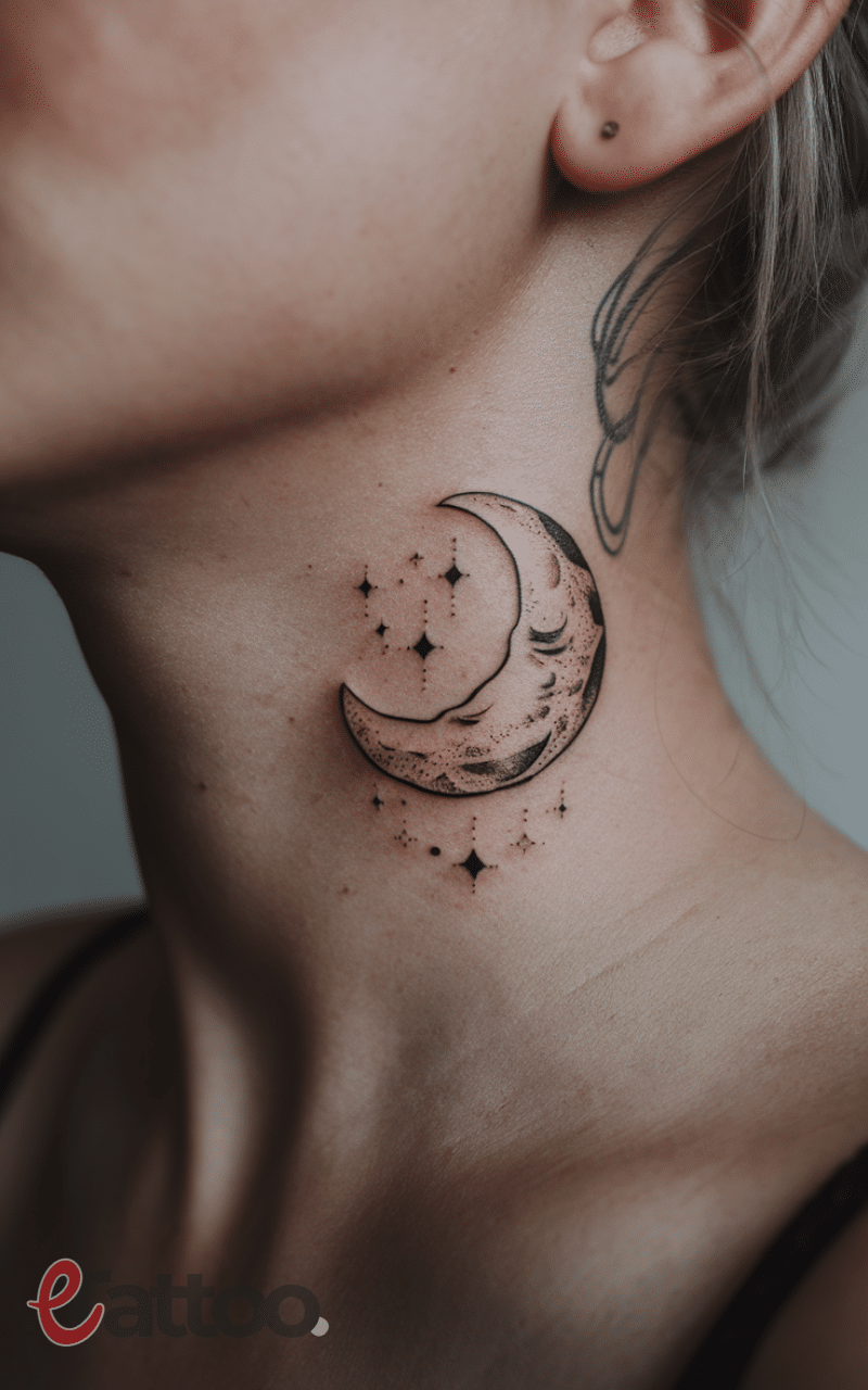 5. Tiny Moon Tattoo on the Neck